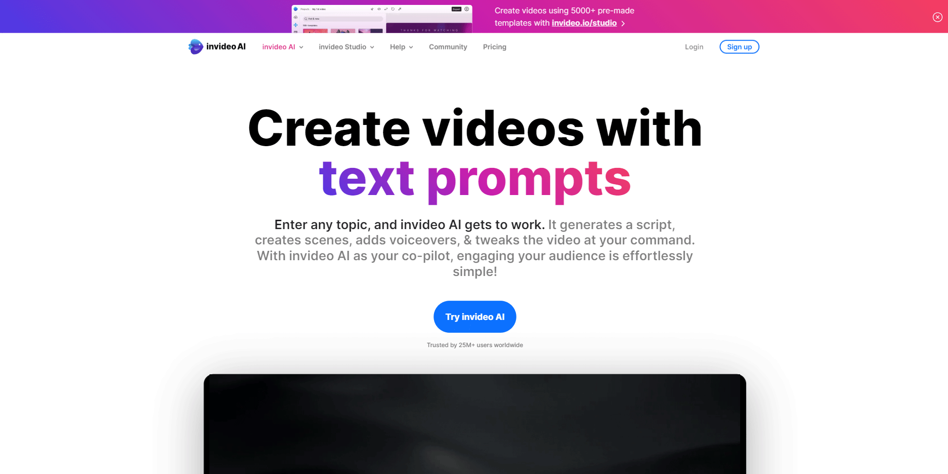 • 特徴2: テキストからビデオへ - テキストを入力するだけで、InvideoのAIがそれに最適なビデオを生成します。